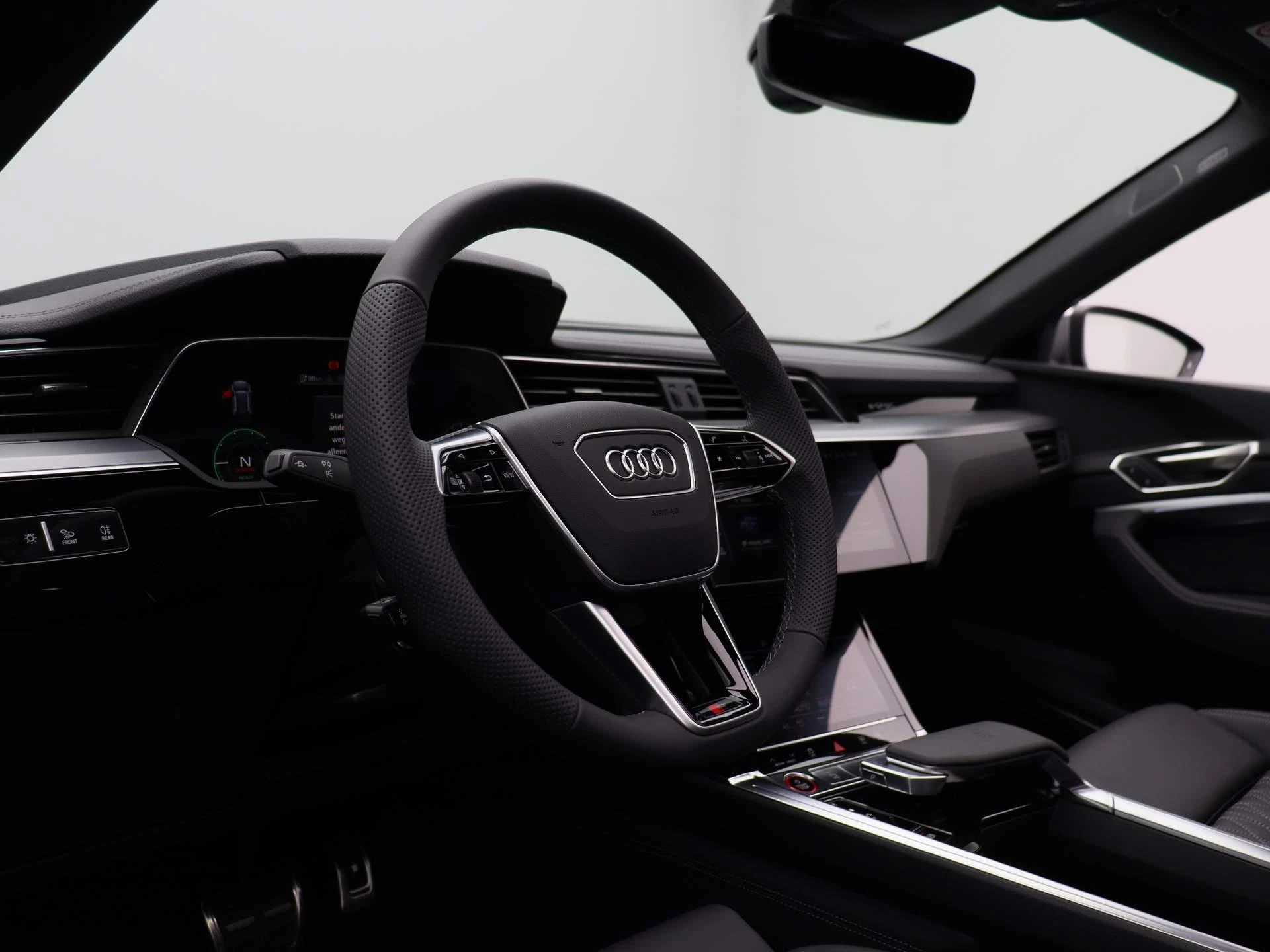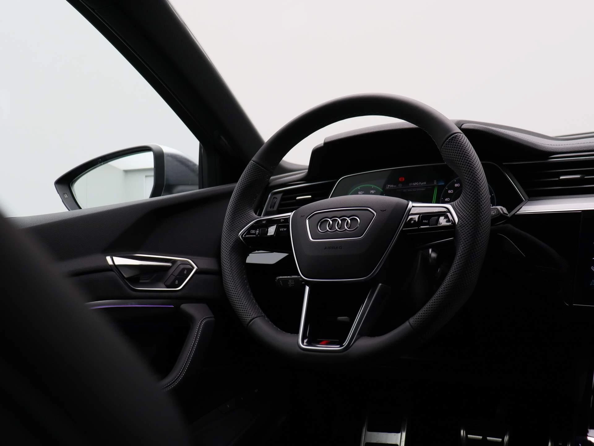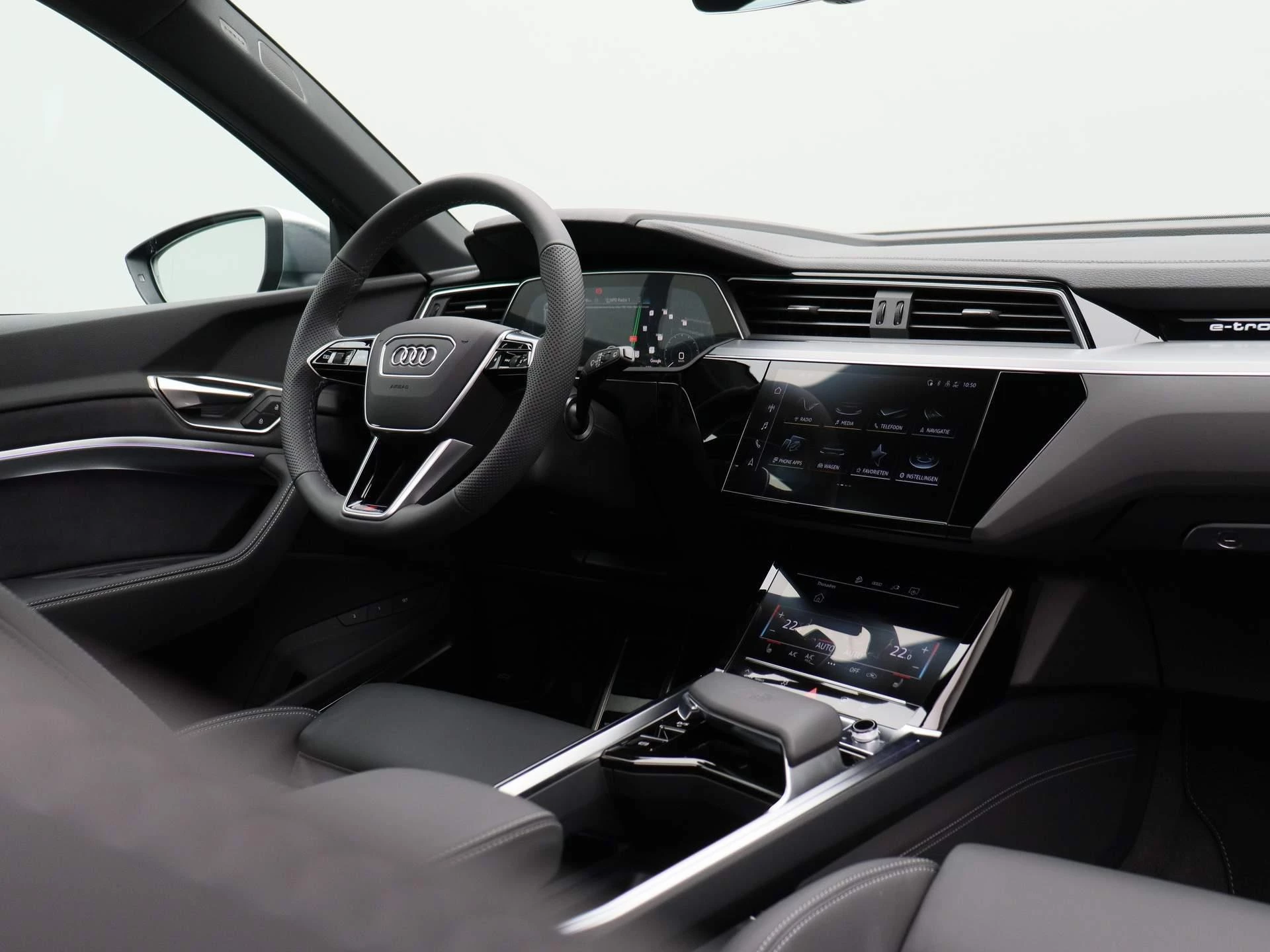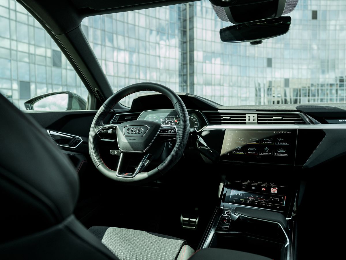 Binnenin vindt u een oase van comfort en technologie. Het interieur is met oog voor duurzaamheid samengesteld uit hoogwaardige, deels gerecyclede materialen. De Audi virtual cockpit, dubbele touchscreens en ambient lighting creëren een cockpit waarin alles draait om beleving, intuïtie en rust.