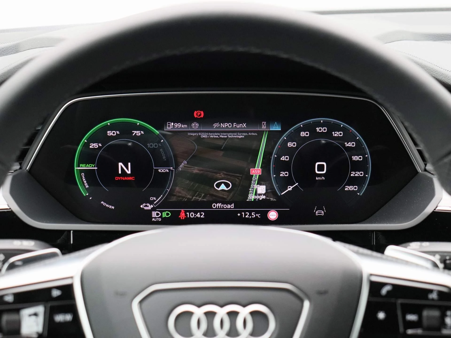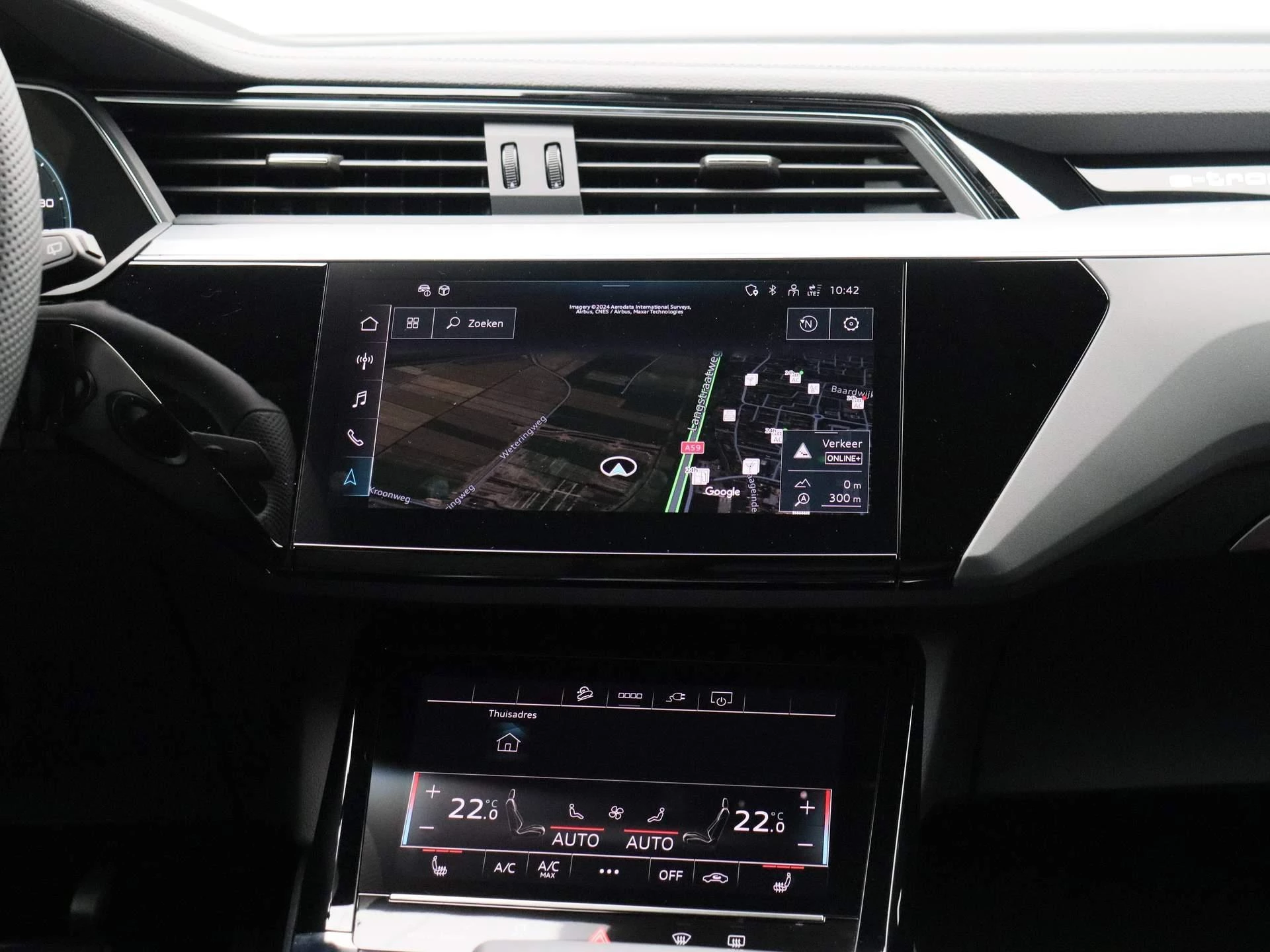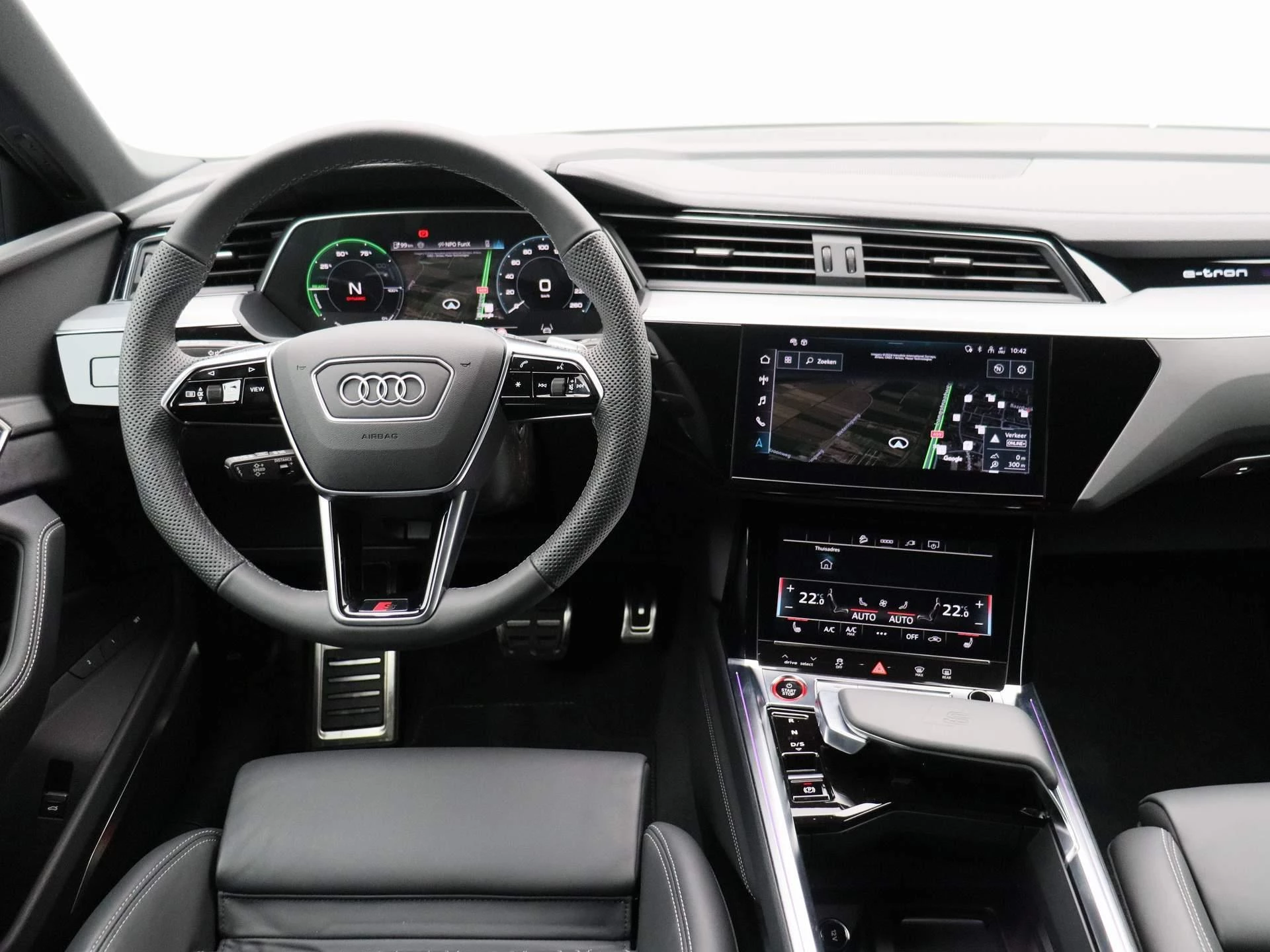 Binnenin vindt u een oase van comfort en technologie. Het interieur is met oog voor duurzaamheid samengesteld uit hoogwaardige, deels gerecyclede materialen. De Audi virtual cockpit, dubbele touchscreens en ambient lighting creëren een cockpit waarin alles draait om beleving, intuïtie en rust.