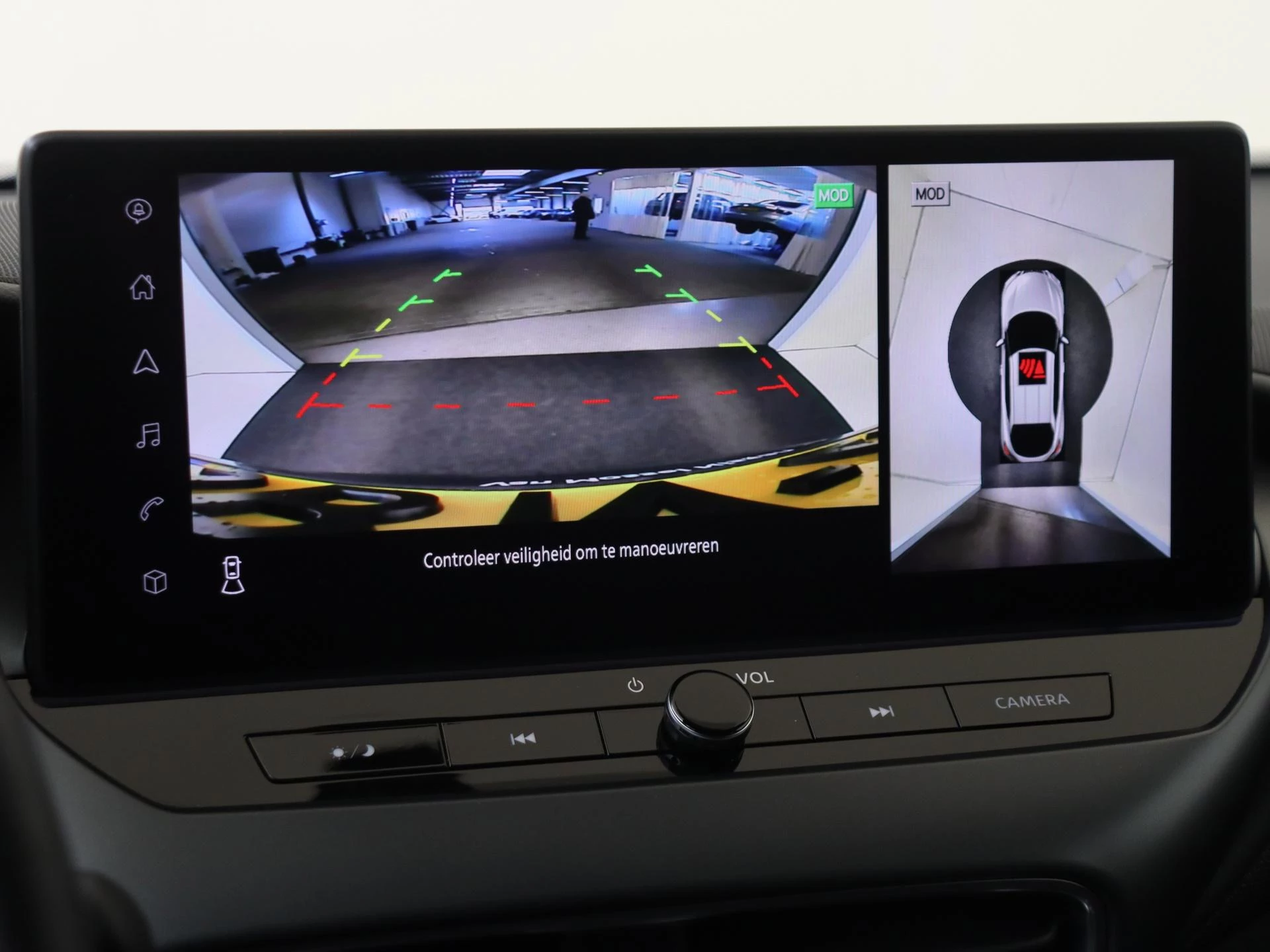 De beschikbare Intelligent Around View Monitor geeft u een virtueel 360° overzicht van uw Nissan Juke, waarbij u op een gesplitst scherm close-ups kunt bekijken van de voor- en achterkant en de stoepzijde. Bovendien laat dit systeem een melding op het scherm zien als het grote objecten in de buurt van uw auto detecteert.