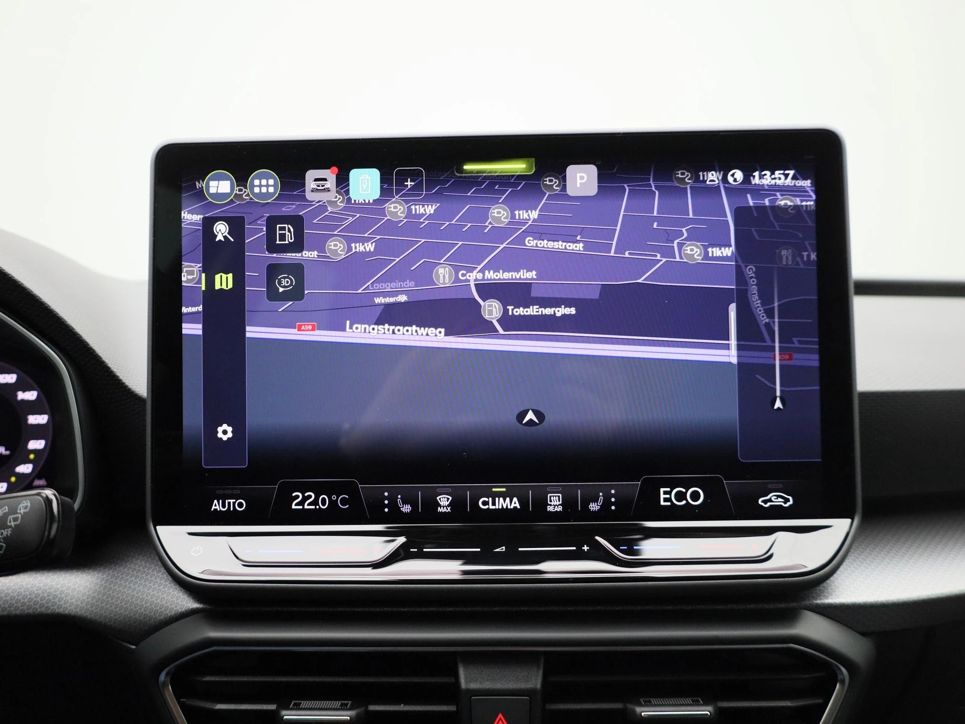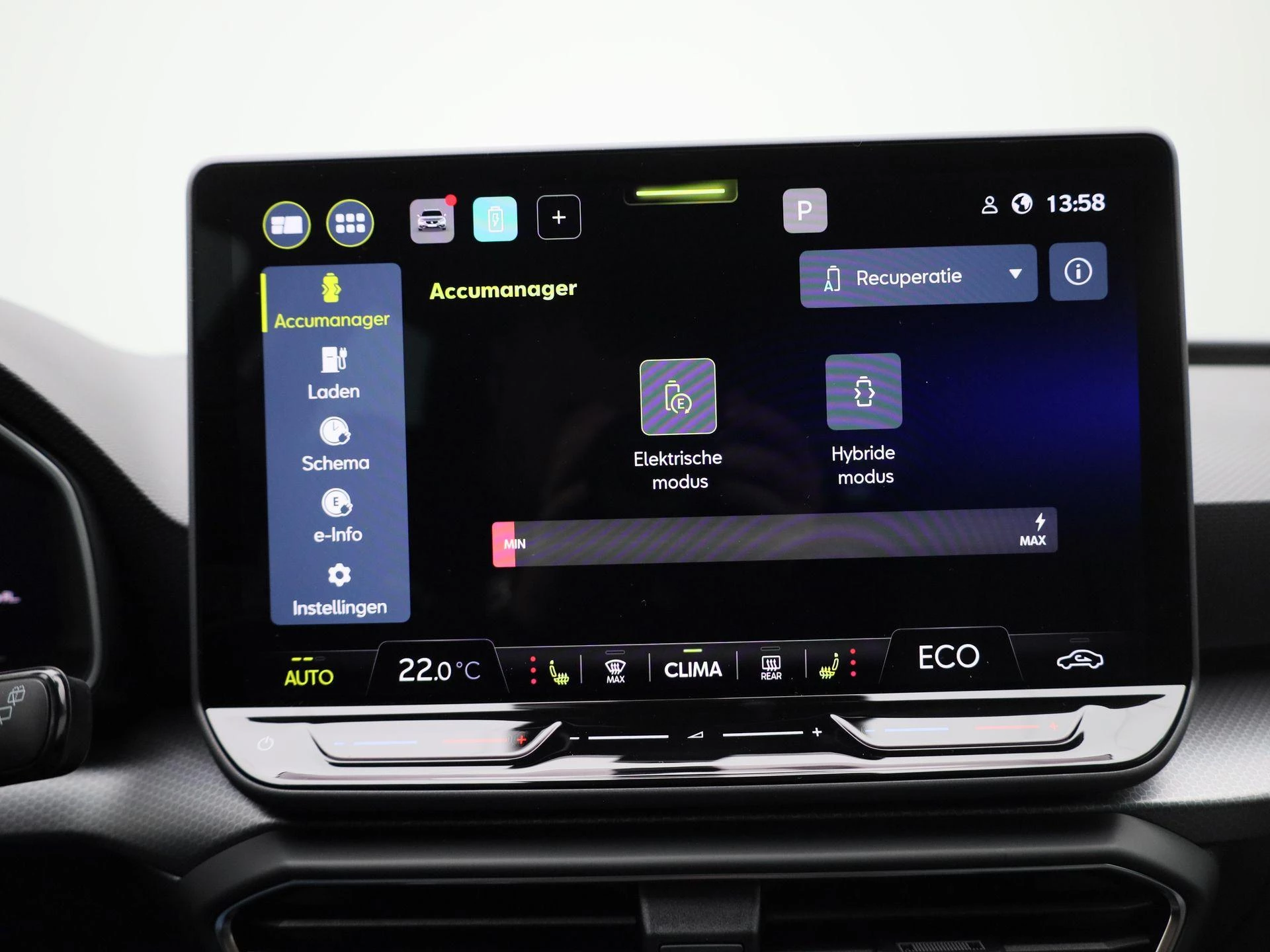 ** Het genoemde aantal kilometers is de theoretische maximale actieradius volgens de WLTP testsystematiek. Deze maximale actieradius kan onder meer worden beïnvloed door de voertuigconfiguratie, acculeeftijd en -conditie, rijstijl en de gebruiks-, omgevings- en klimaatomstandigheden zoals de buitentemperatuur, de verkeerssituatie en het rijgedrag.